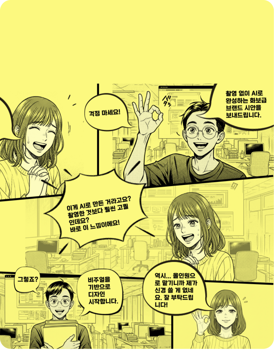 유리원은 AI 비주얼 기술을 통해 당신의 브랜드만을 위한 고퀄리티 맞춤 이미지를 창조합니다.